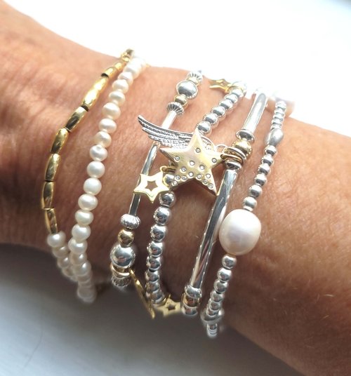 Freshwater Pearls blended with Sterling Silver and Gold Vermeil, a gorgeous combinaion to elevate your Summer style.