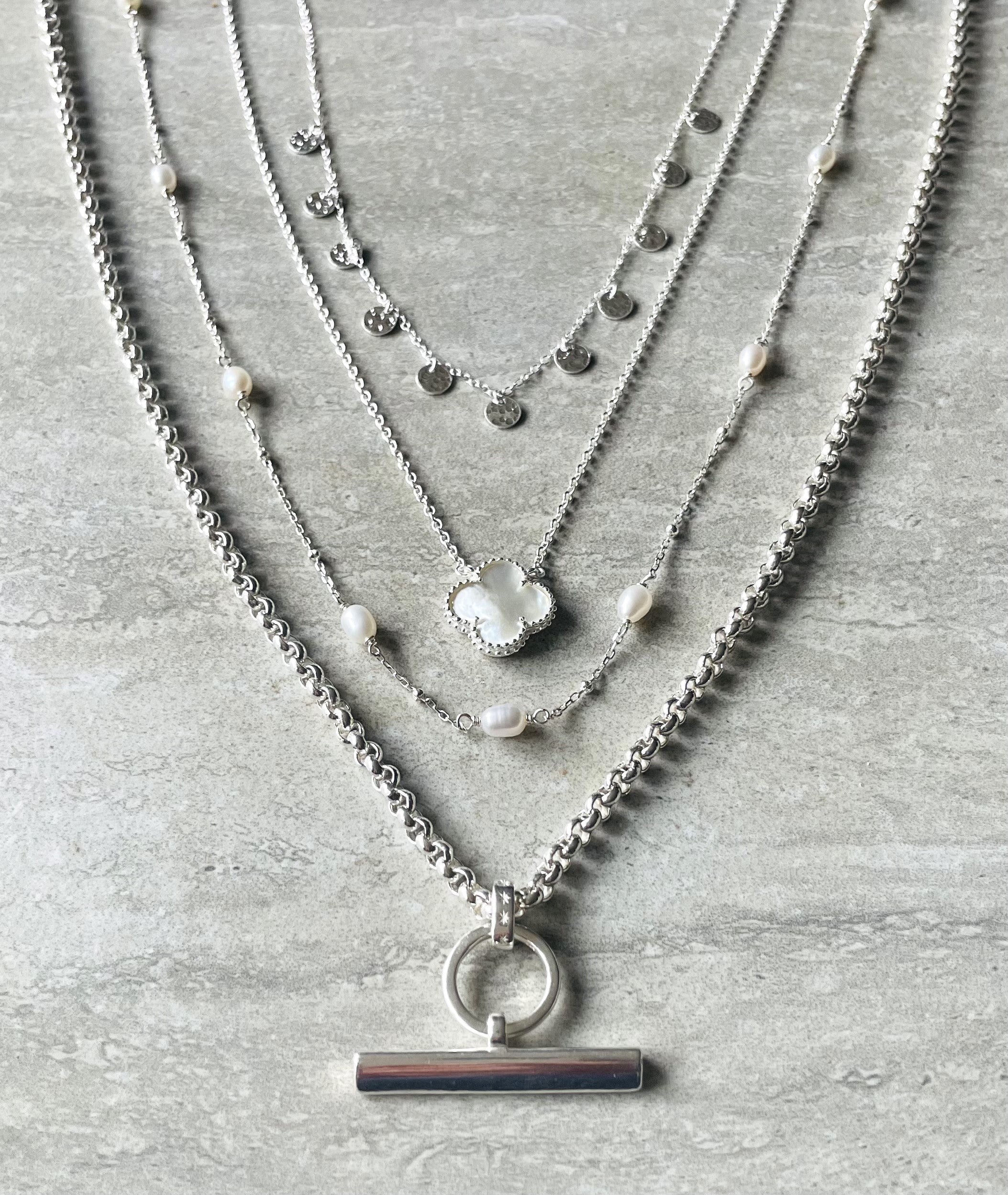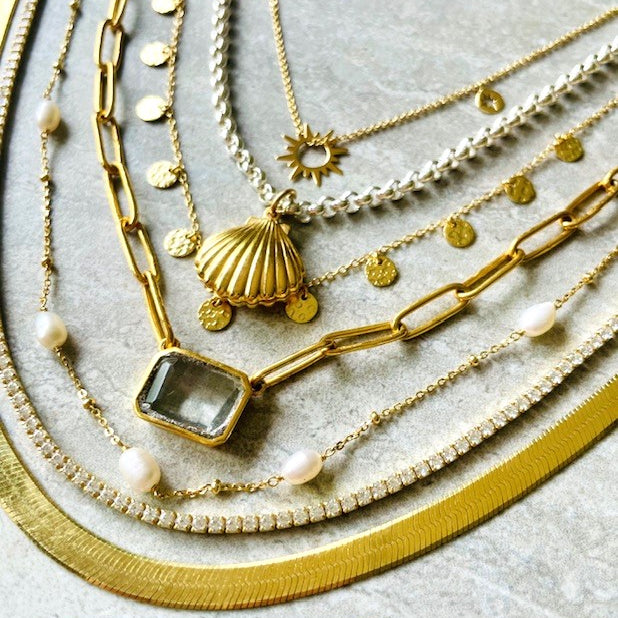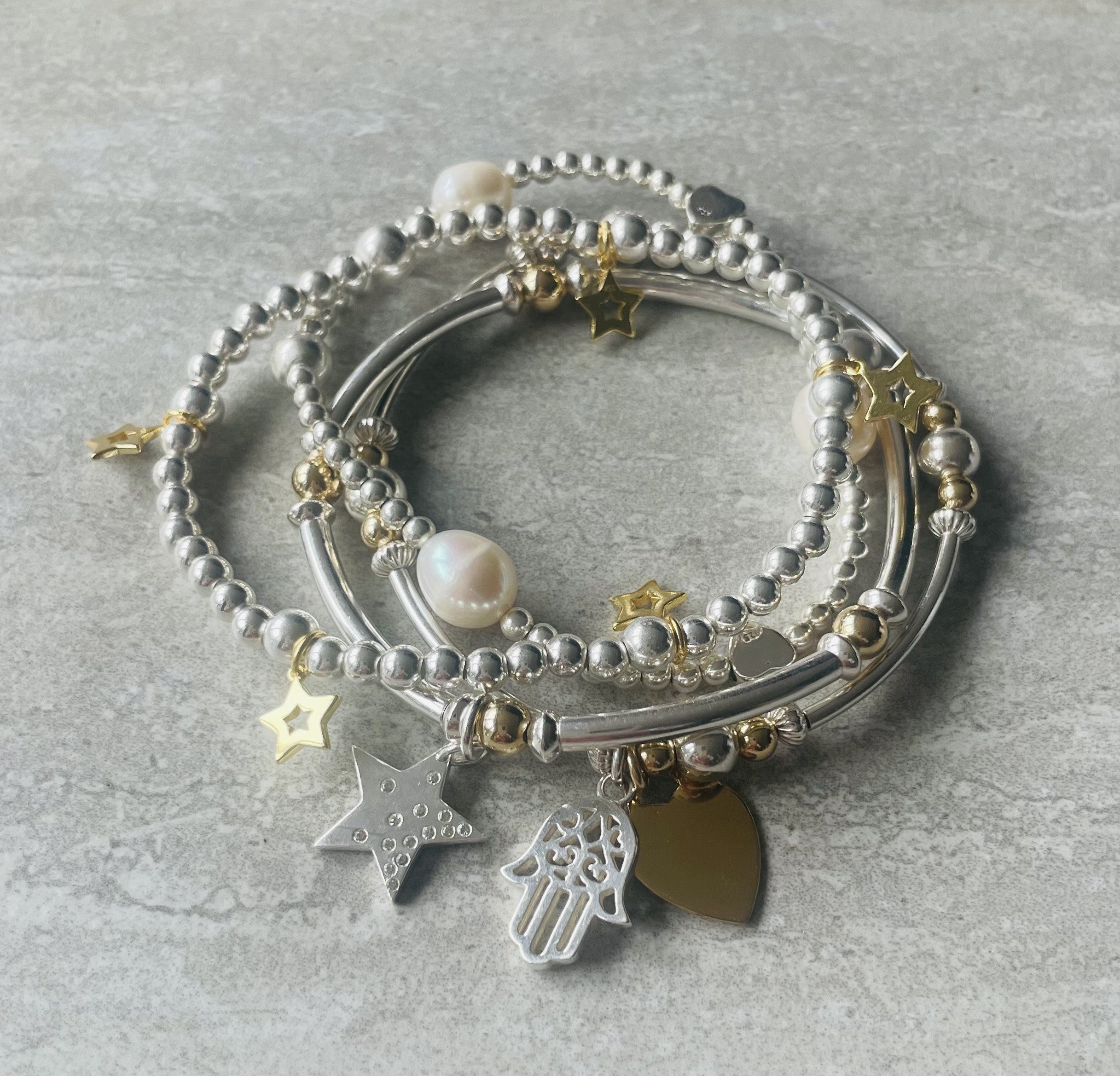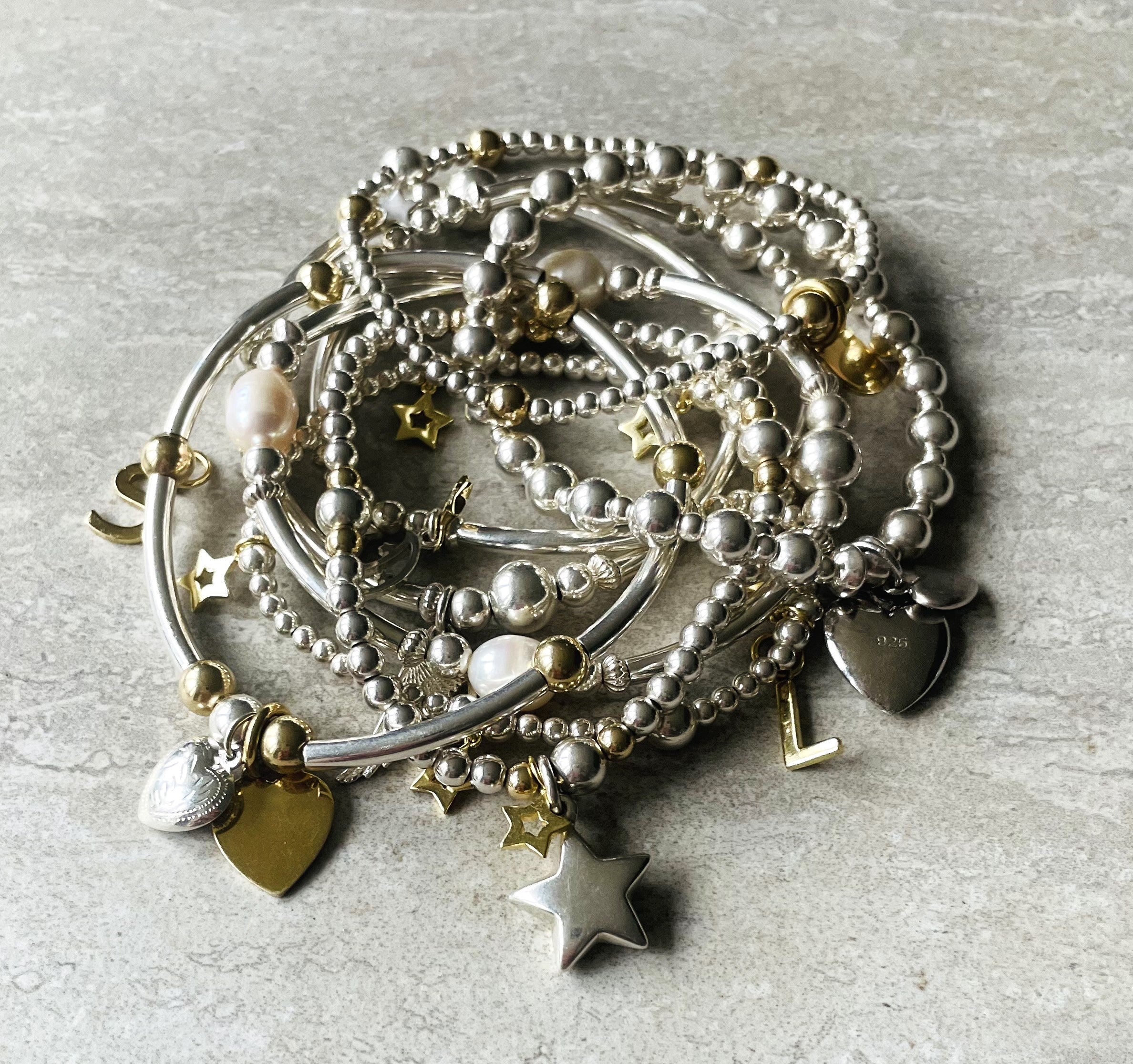 Have fun creating your own unique stack of layered necklaces and bracelets with endless possibilities!